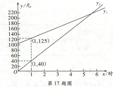 ∴$y_1 = 20x + 105。$