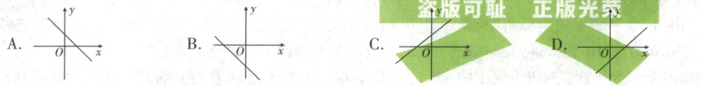 4. 已知一次函数$ y = kx + b $,$ y $随$ x $的增大而减小,且$ kb \lt 0 $,则在平面直角坐标系内它的大致图象是(