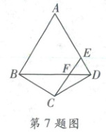 7. 如图,在四边形$ ABCD $中,$ AB = AD = 14 $,$ BC = DC $,$ \angle A = 60° $,点$ E $在$ AD $上,连接$ BD $,$ CE $相交于点$ F $,$ CE // AB $。若$ CE = 10 $,则$ CF $的长为(