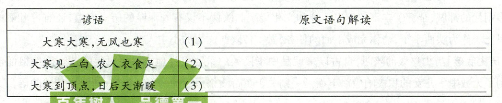 10. 在我们日常生活中有很多谚语都蕴含着节气的智慧,请根据文本内容,按要求摘录原文中的句子对下列谚语进行解读。(3 分)