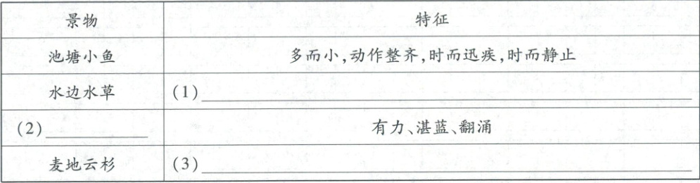 11. 【画面再现】梳理文中景物及其特征,完成下表。(6分)