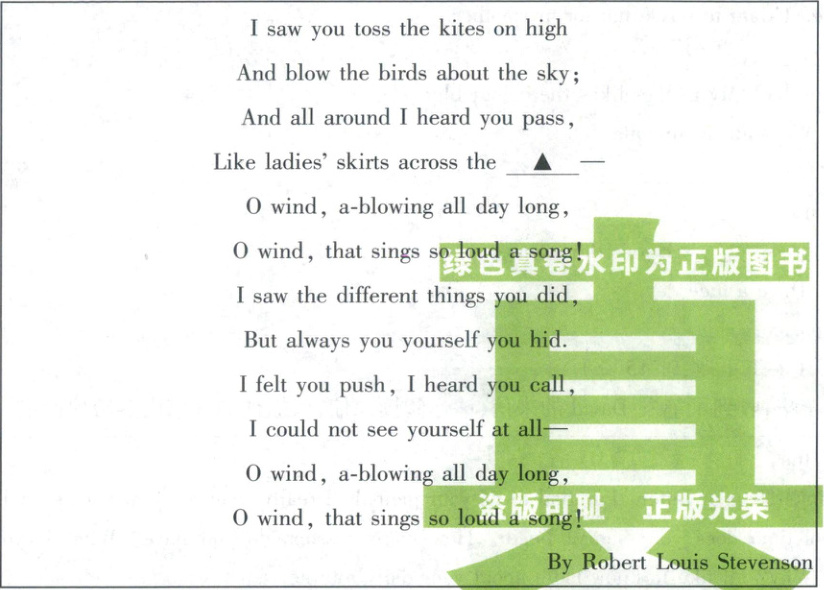 55. B 【解析】标题归纳题。通读整首诗歌内容可知,诗歌主要描述了风,因此“The Wind”作为标题最合适。故选B。