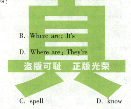 的教室里。”可知此处应该是弗兰克和戴尔的铅笔不在那儿。又因为主语是复数,所以此处用aren’t。故选D。