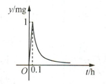 (1)从药物释放开始,每立方米空气中的含药量$y$(单位:$mg$)与时间$t$(单位:$h$)之间的函数关系式为;