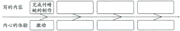 3.写的内容:玩竹蜻蜓 木翅飞走不见了 再次制作弄伤了手 内心的体验:狂喜 恼恼地 念念不忘
