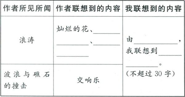 杂虑。而那隆隆的浪,滚滚的波,那浪波与礁石搏斗的交响乐,又激荡起我浑身的热血。⑤海啊,原来是这个样子的!