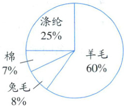 3. 熙熙妈妈买了一件毛衣,如图是毛衣各成分质量占总质量的百分比的统计图,涤纶的质量比羊毛的质量少140g,那么熙熙妈妈买的这件毛衣有多少克?(5分)