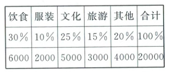 )%。(2)旅游支出为3000元,请完成下表。