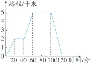 7. 淘气从家去相距 2 千米的超市买东西,然后去距家 5 千米的图书馆看书,从图中可以看出:淘气在图书馆看书用时是在超市买东西用时的(