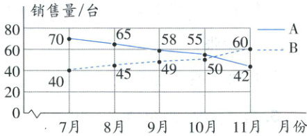 (2)11月A专卖店手机的销售量比B专卖店少(