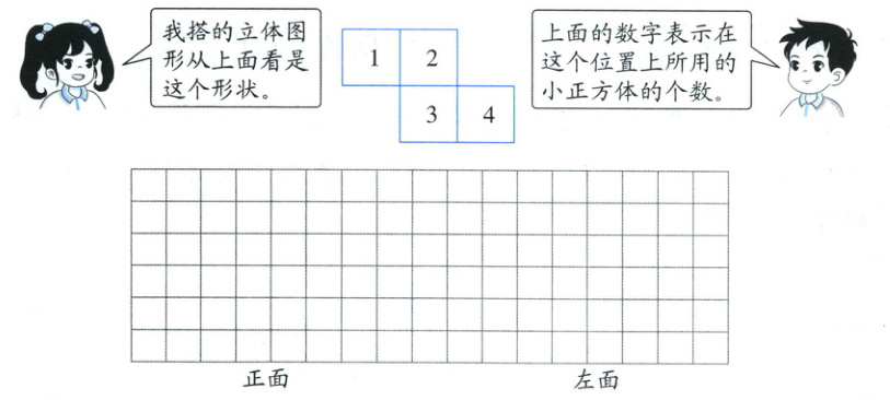 请你在方格纸中画出从正面、左面看到的这个立体图形的形状。