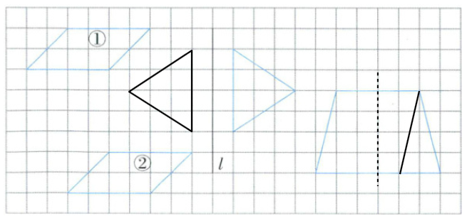 2. 画出三角形关于直线$l$的轴对称图形。(2分)
