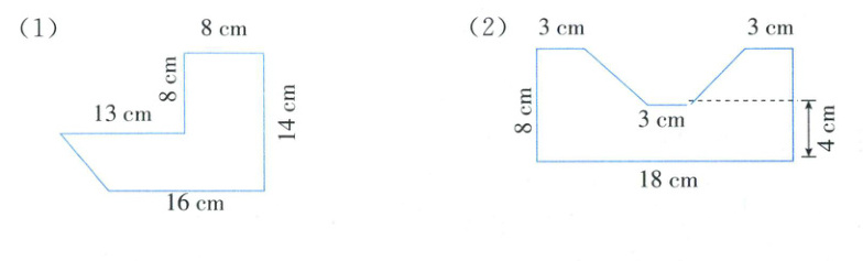 (1)$(16 - 8 + 13) × (14 - 8) ÷ 2 = 63(cm^2)$