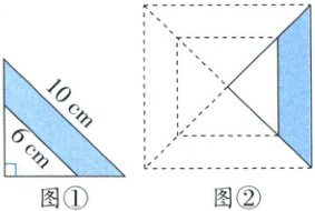 淘气从一个大等腰直角三角形中剪掉一个小等腰直角三角形(如图①),你能求出涂色部分的面积吗?写出你的思考过程。温馨提示:可以借助乐乐的拼法(如图②),也可以尝试其他方法。