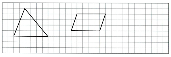 2. 在方格图中画一个三角形和一个平行四边形,使它们的面积都等于$15 cm^2$。(每个小方格的边长代表 1 cm)(5 分)