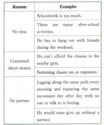 Read the email on page 23 and complete the following table about the reasons and examples used by Leo for supporting his reasons.