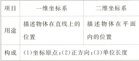 (1) 因为$-5<5$,所以在一维坐标系中,$5\ m$的位置比$-5\ m$的位置距离原点远一些。(