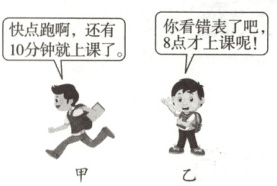 如图所示,甲、乙两同学的对话中,哪个指时间?哪个指时刻?