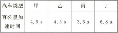 7. 汽车的百公里加速时间指的是汽车从静止加速到100 km/h所用的时间,是衡量汽车性能的一项重要指标。下表是几款汽车的百公里加速时间,则平均加速度最大的汽车是(