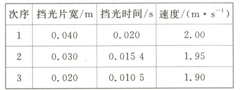 。滑块从开始遮住第 1 个光电门到开始遮住第 2 个光电门的时间为 Δt = 3.0 s,则滑块的加速度 a =0.1m/s²