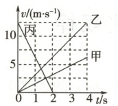 7. (双选)甲、乙、丙是三个在同一直线上运动的物体,它们的运动的v-t图像如图所示,下列说法正确的是(