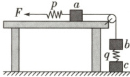 现用水平力缓慢地向左拉$p$弹簧的左端,直