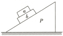两长方体物块$a$和$b$叠放在$P$的斜面上,