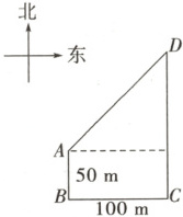 2.解析:本题考查坐标系的建立方法。可以以A点为坐标原点,向东为x轴的正方向,向北为y轴的正方向建立坐标系,如图所示,则各点坐标为A(0,0),B(0,-50m),C(100m,-50m),D(100m,100m)。