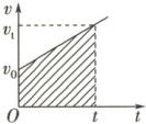 (1)位移在$v-t$图像中的表示:做匀变速直线运动的物体的位移在数值上对应着$v-t$图像中的图线和________包围的“面积”。如图所示,在$0~t$时间内的位移大小等于梯形的“面积”。即:$S = \frac{v_0 + v_t}{2}t$。