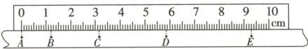3. 某小组利用打点计时器对物块沿倾斜的长木板加速下滑时的运动进行探究。物块拖动纸带下滑,打出的纸带一部分如图所示,已知打点计时器所用交流电的频率为$50\ Hz$,纸带上标出的每两个相邻点之间还有四个打出的点未画出。在$A、B、C、D、E$五个点中,打点计时器最先打出的是$\boldsymbol{$
