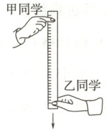 ①首先,甲同学捏住直尺上端,使直尺保持竖直状态,直尺零刻度线位于乙同学的两指之间。