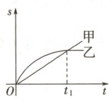 B.$0~t_{1}$时间内,甲车通过的路程大于乙车通过的路程