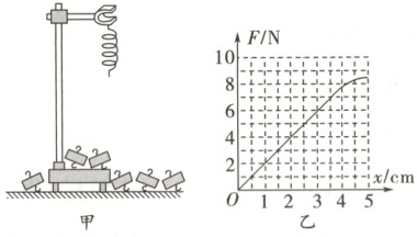 。(3) 图乙是弹簧弹力$ F $与弹簧伸长量$ x $的$ F-x $图像,由此可求出弹簧劲度系数为