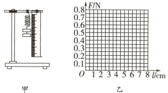(1) 试根据这些实验数据,在图乙所示的坐标纸上作出弹簧弹力大小$ F $跟弹簧总长度$ l $之间的函数关系图像。