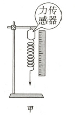 【典例3】 用如图甲所示的实验装置研究弹簧的弹力与形变量之间的关系。轻弹簧上端固定一个力传感器,然后固定在铁架台上,当用手向下拉伸弹簧时,弹簧的弹力可从传感器读出。用刻度尺可以测量弹簧原长和伸长后的长度,从而确定伸长量。测量数据如表格所示: