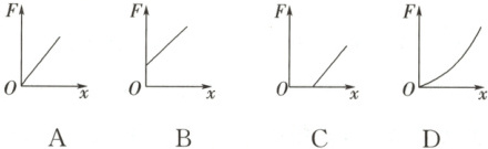 (2) 实验中若该同学先把弹簧平放在桌面上使其自然伸长,用直尺测出弹簧的原长$ l_0 $,再把弹簧竖直悬挂起来,挂上钩码后测出弹簧伸长后的长度$ l $,把$ (l - l_0) $作为弹簧的伸长量$ x $。这样操作,由于弹簧自身重力的影响,最后画出的图像可能是图中的
