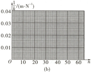 (3) 图(b)中画出的直线可近似认为通过原点。若从实验中所用的弹簧截取圈数为$ n $的一段弹簧,该弹簧的劲度系数$ k $与其圈数$ n $的关系的表达式为$ k = $