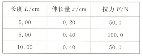 等。(2) 若实验中测量的数据如表所示,根据这些数据请写出$ x $与$ F $、$ L $间的关系式:$ x = $