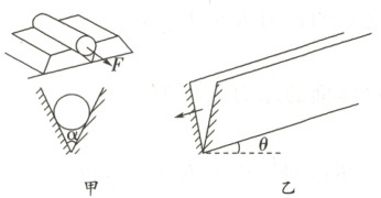 (2) 把整个装置倾斜(如图乙所示),保证圆柱体工件和槽始终处于相对静止状态,此过程中圆柱体工件和槽之间的摩擦力怎样变化?