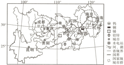 (1)长江经济带拥有甲、乙、丙三个国家级城市群,指出其名称。(3分)