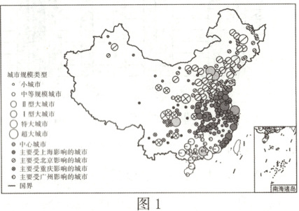 (1)与受北京影响的城市相比,说明受上海影响的城市的分布特点。(3分)