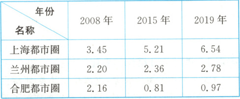 (2024·广东卷)都市圈功能分工指数可反映都市圈内“生产性服务业在中心城市集聚、制造业在外围城市集聚”的城市分工特点,指数值越大,表明分工程度越高。下表为2008年、2015年和2019年我国三个都市圈功能分工指数值。据此完成5~6题。
