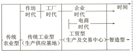 (2023·广东卷)浙江省温岭市制鞋业发达,Z镇是该市最大制鞋基地,其制鞋业始于20世纪80年代。近年来,随着电商的发展,该镇制鞋业趋于更加灵活化。下图示意Z镇制鞋业发展历程。据此完成7~8题。