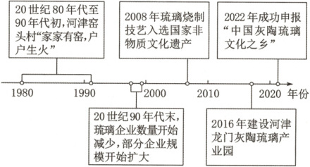 (2024·安徽卷)河津市地处黄河与汾河交汇处,是灰陶琉璃的故乡。河津灰陶琉璃历史悠久,题材多样。下图为20世纪80年代以来河津灰陶琉璃产业发展历程。据此完成11~13题。