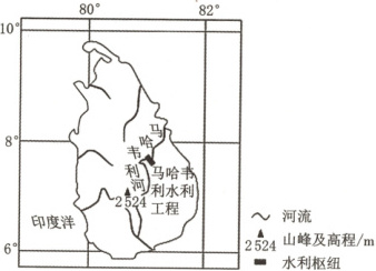 (2024· 广东湛江高三期末)马哈韦利水利工程为斯里兰卡的重要工程,已建成多座大坝。下图示意马哈韦利水利工程的位置。据此完成 9~10 题。
