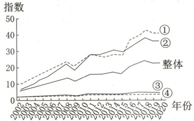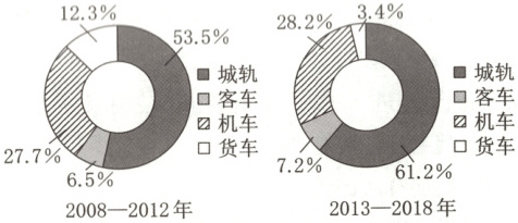 10.B 11.A 解析:第10题,该企业在印度设立了生产铁路电机的合资企业,在积极探索实现印度本土化整车产品的维保和总装,目的是提升在当地持续经营的能力。第11题,根据图中信息可知,“一带一路”倡议提出后,城轨占比提升最大,货车占比下降,反映我国该企业产品高端化趋势明显。