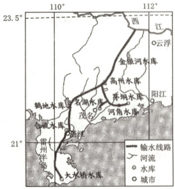 (2024·江苏南京高三模拟)雷州半岛位于广东省西南部,西北高、东南低,海拔多在1000米以下,自古以来就是“苦旱之地”。2022年8月广东省实施了环北部湾广东水资源配置工程,该工程从西江干流取水,调水至雷州半岛南部,供水范围覆盖茂名、湛江等地。如图为雷州半岛位置示意图。据此完成1~3题。