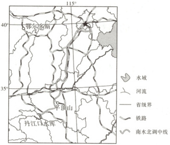 (2024·浙江宁波二模)2023年12月5日,尼龙液袋包装的丹江口水库优质水,通过“北煤南运”铁路返程空车,从河南平顶山运往内蒙古鄂尔多斯,为水资源跨区域调配提供新的思路。下图为该铁路运输线路所经区域示意图。据此完成8~9题。
