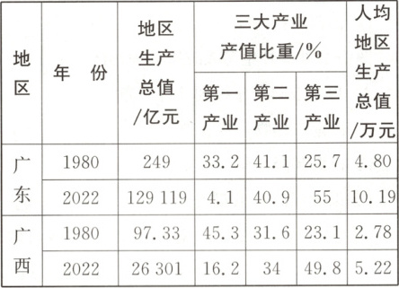 (2) 说明广东、广西两省区经济发展差异的具体表现。(6分)