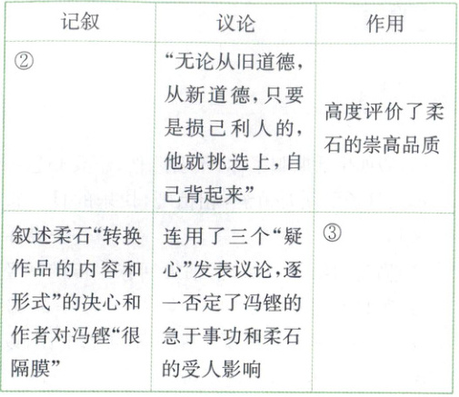 3. 阅读文章第二部分,简要分析作者塑造柔石这一人物形象时是如何运用夹叙夹议手法的,并简要分析其作用。请填写下表。